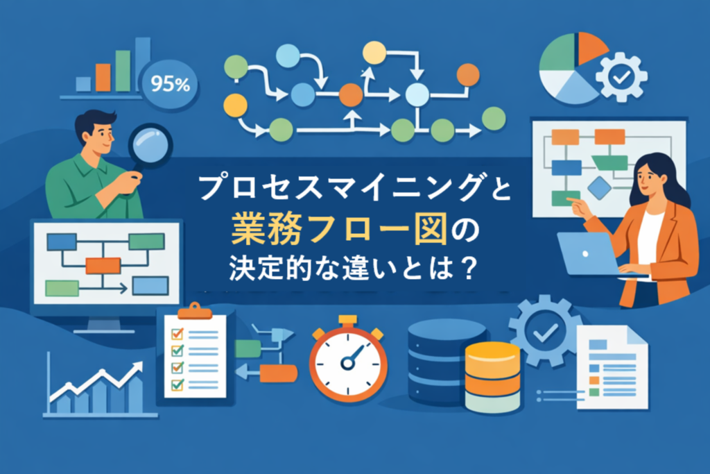 経営会議や業務改善プロジェクトで頻繁に登場する「業務フロー図」。そして昨今、急速に注目を集める「プロセスマイニング」。一見すると、どちらも業務プロセスを可視化する手法に思えるかもしれません。しかし、この2つは根本的に異なるアプローチであり、経営判断やKPI改善において生み出す価値も大きく異なります。